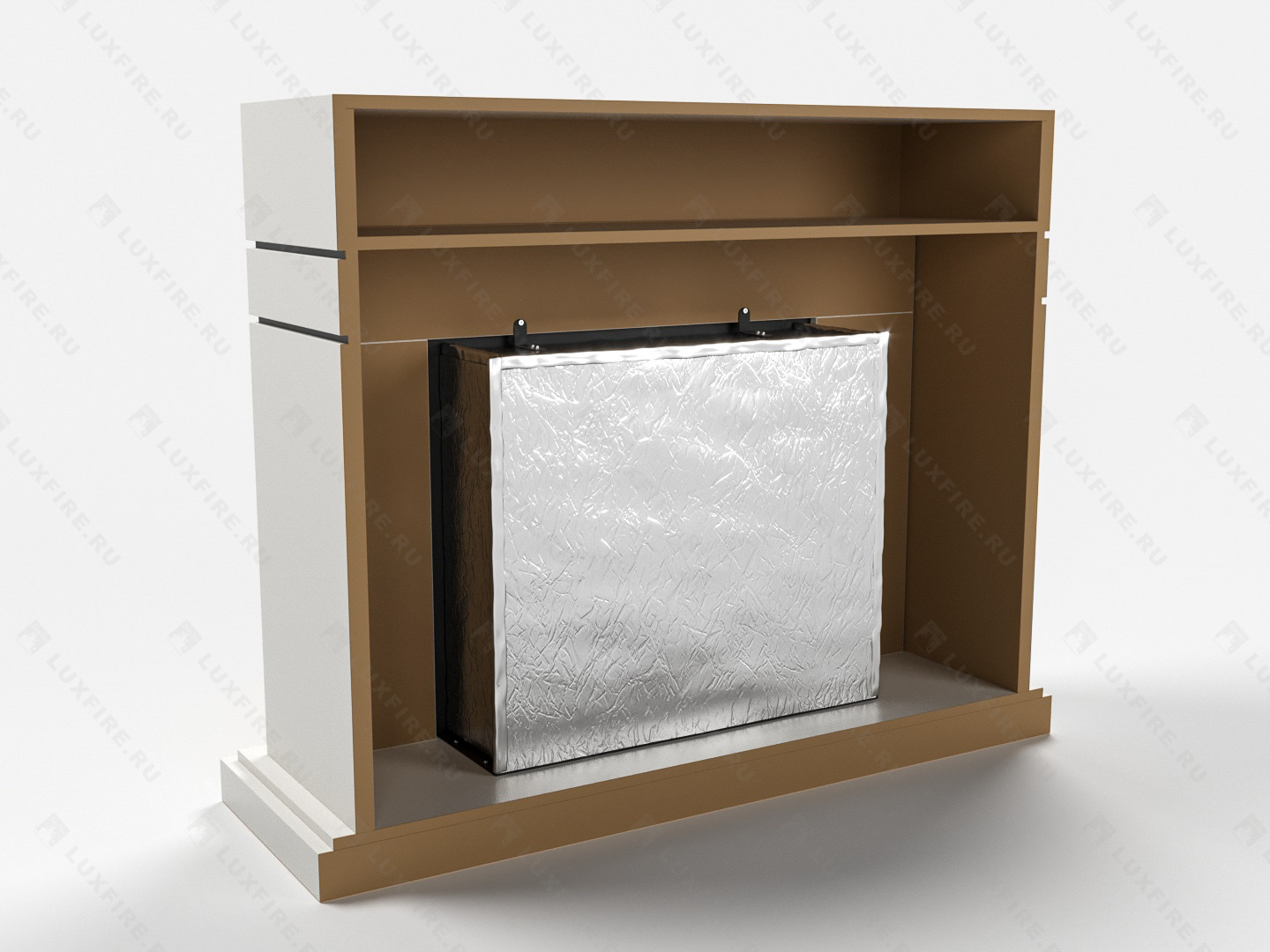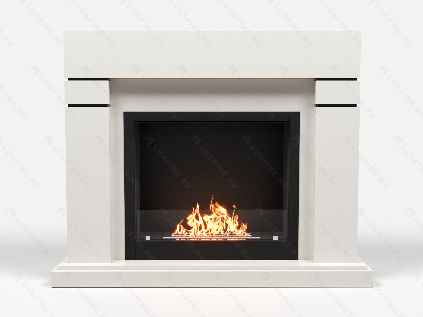 Представляет собой сборную окрашенную конструкцию из МДФ c портальным биокамином Lux Fire "Фаер Бокс 1-26"