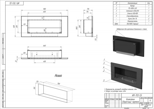 Встраиваемый биокамин / очаг Mercury 900 (SappFire)