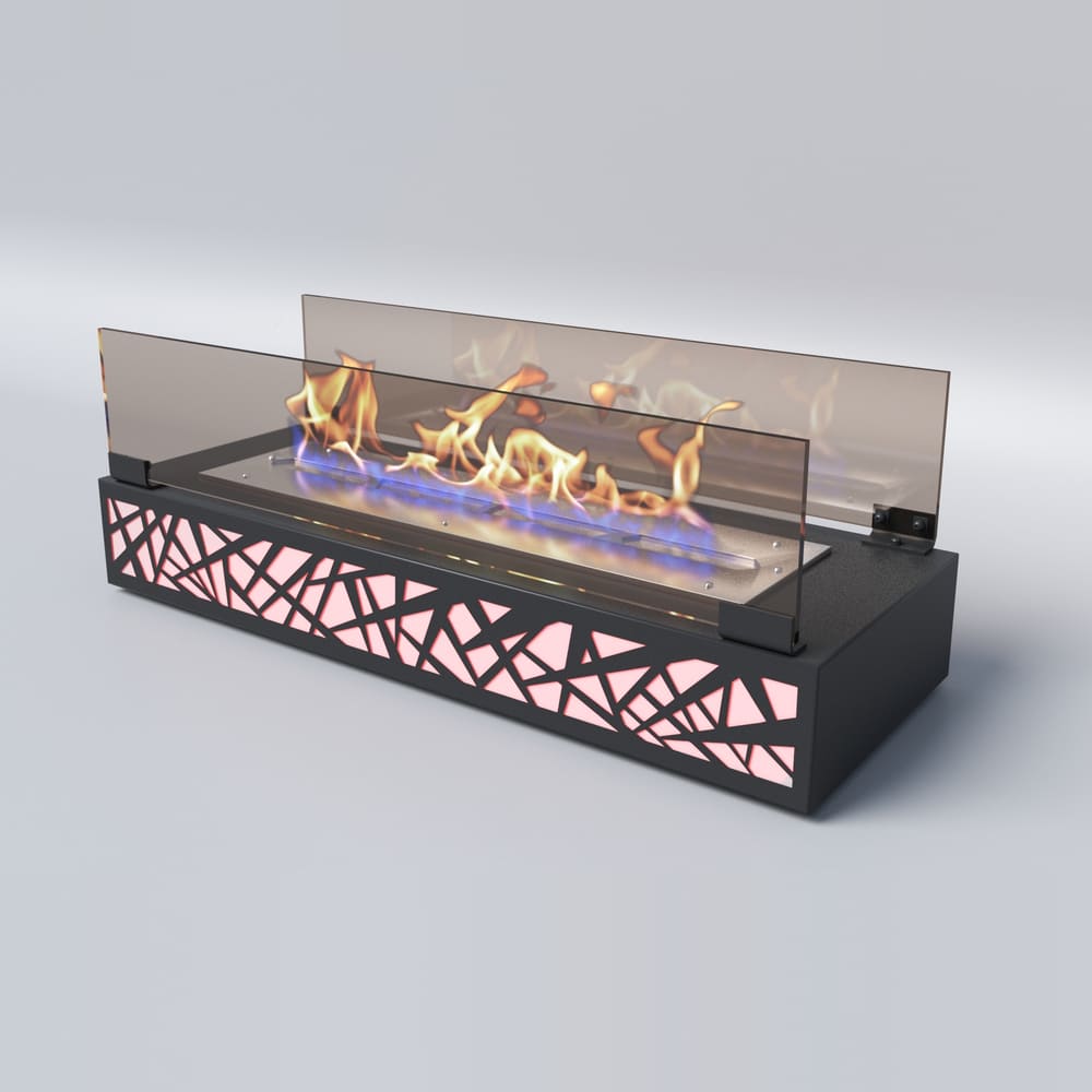 Небольшой домашний камин, можно установить на любую поверхность, он не требует дымохода. Линия огня данного камина 400 мм, располагается практически по всей длине камеры сгорания. Корпус биокамина изготавливается из металла, жаропрочного, закаленного стекла, закрывающего топливный блок, выполненный из высококачественной нержавеющей стали. Всё, что нужно, для его работы — качественное биотопливо от нашей компании.