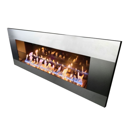 Декоративное стекло — крепится на всю заднюю стенку очага. За счет своего зеркального отражения, пламя визуально становится в 2 раза больше и кажется, что камин горит еще ярче.