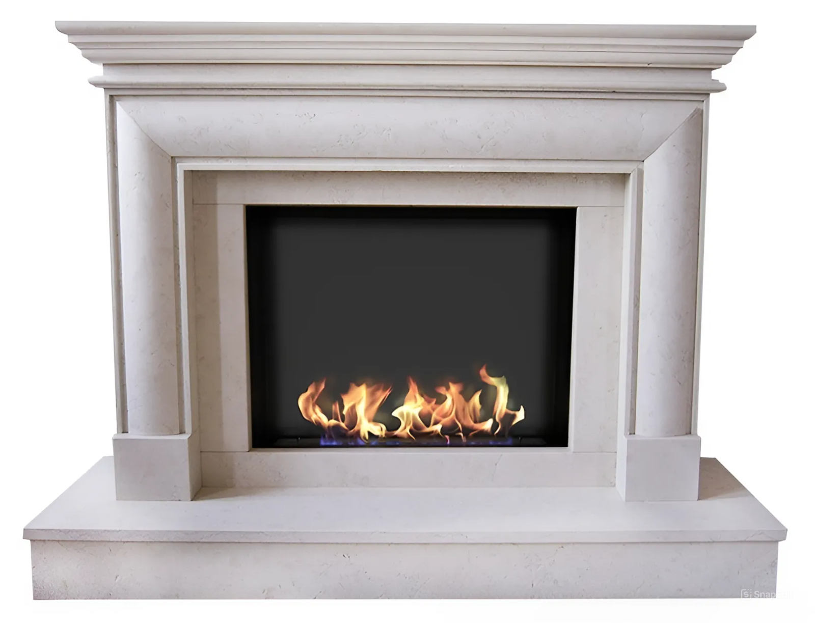Напольный портал "Alavira" из мрамора сорта "Крема Нова" с биокамином