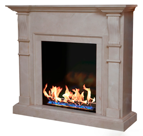 Портал "Monarch" из мрамора "Крема Марфил" с биокамином