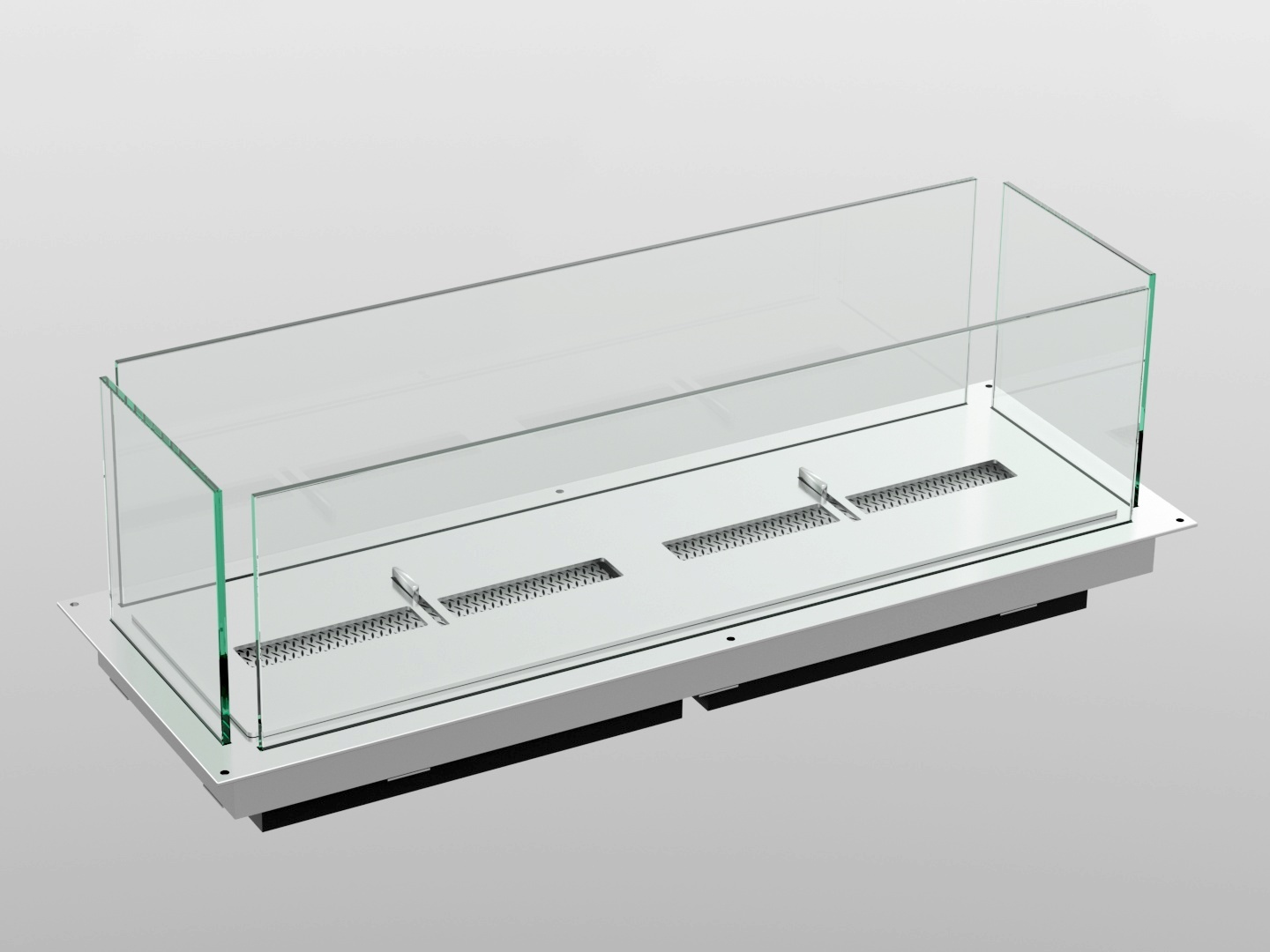 Конструкция Модуль 600 это цельная металлическая рамка, в которую помещается биотопливная горелка Lux Fire 600 c увеличенной лицевой панелью, обрамленная 4 закаленными стеклами.