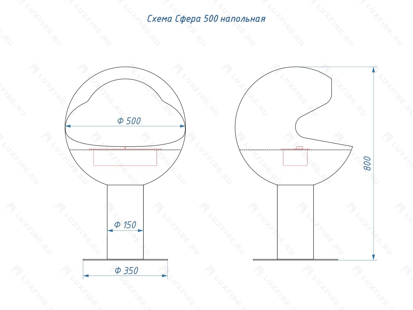 Размер биокамина ВхШхГ: 800х500х500. Разработан для квартир с площадью от 18 м2.