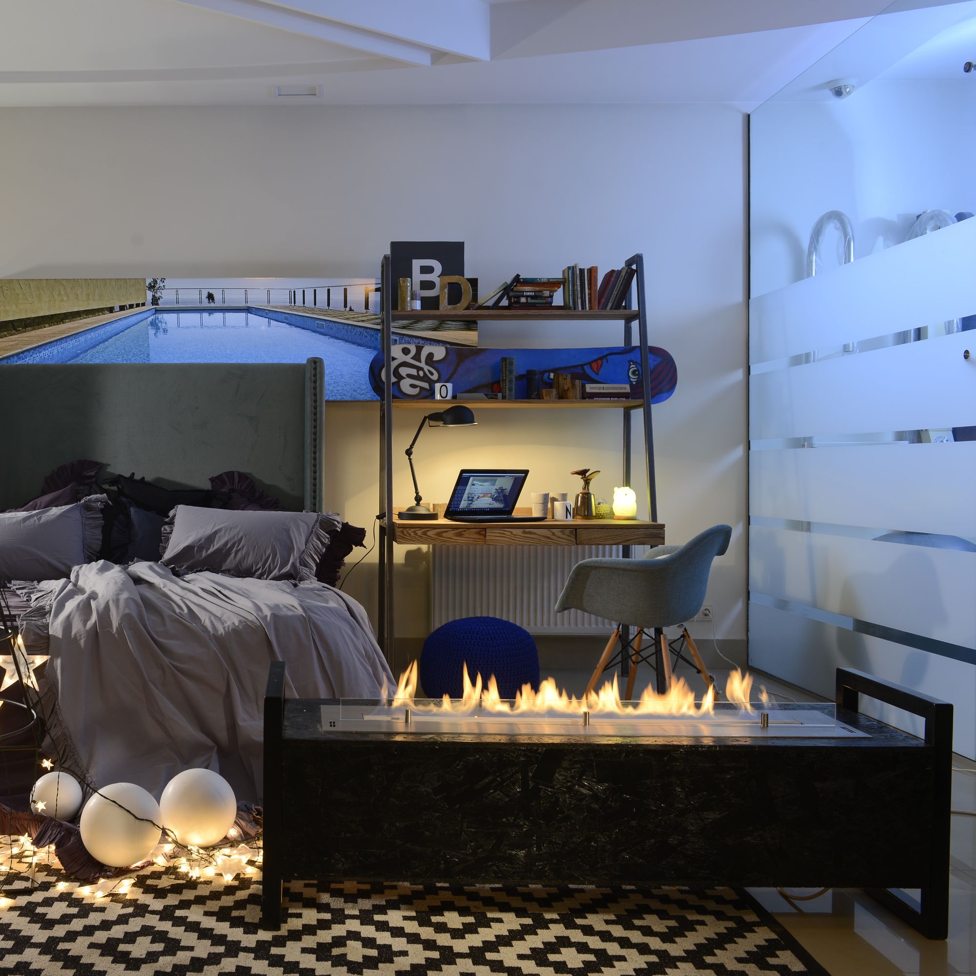 - Индикация уровня топлива и высоты пламени, отображаемая на дисплее управления биокамином или на смартфоне.