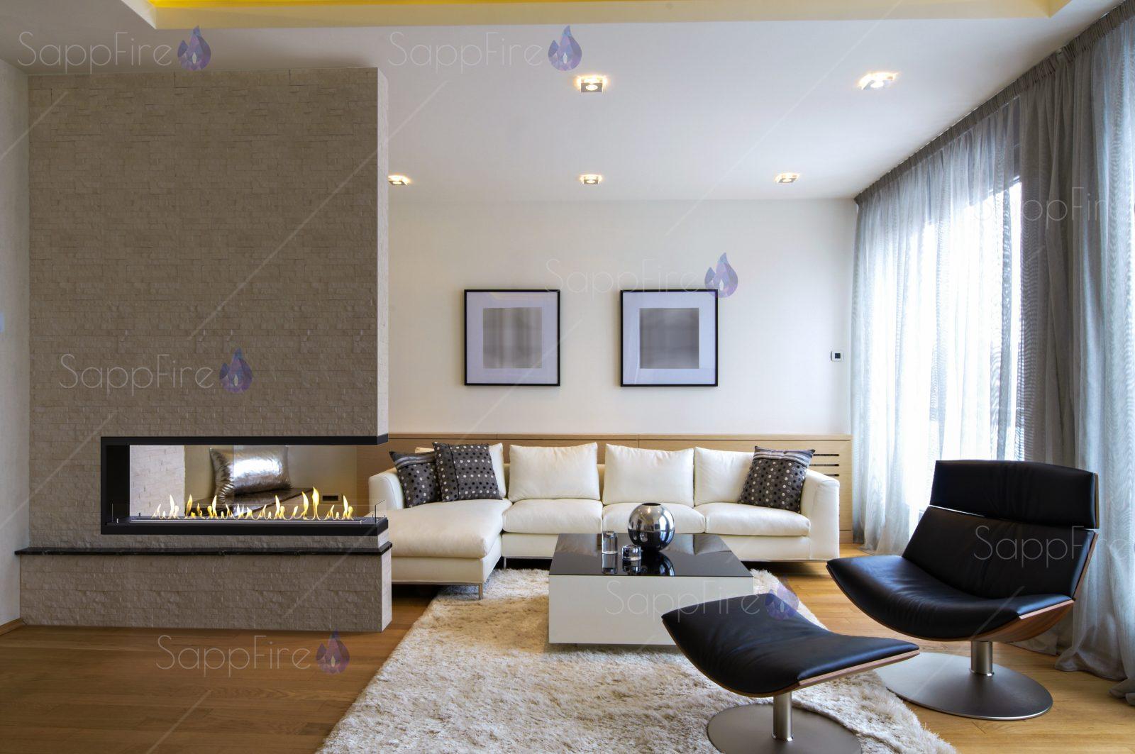 Торцевой сквозной очаг 800 SappFire – отличное решение для оформления интерьера вашей квартиры.Биокамин приобрел более пропорциональные габариты, широкую линию единого огня.