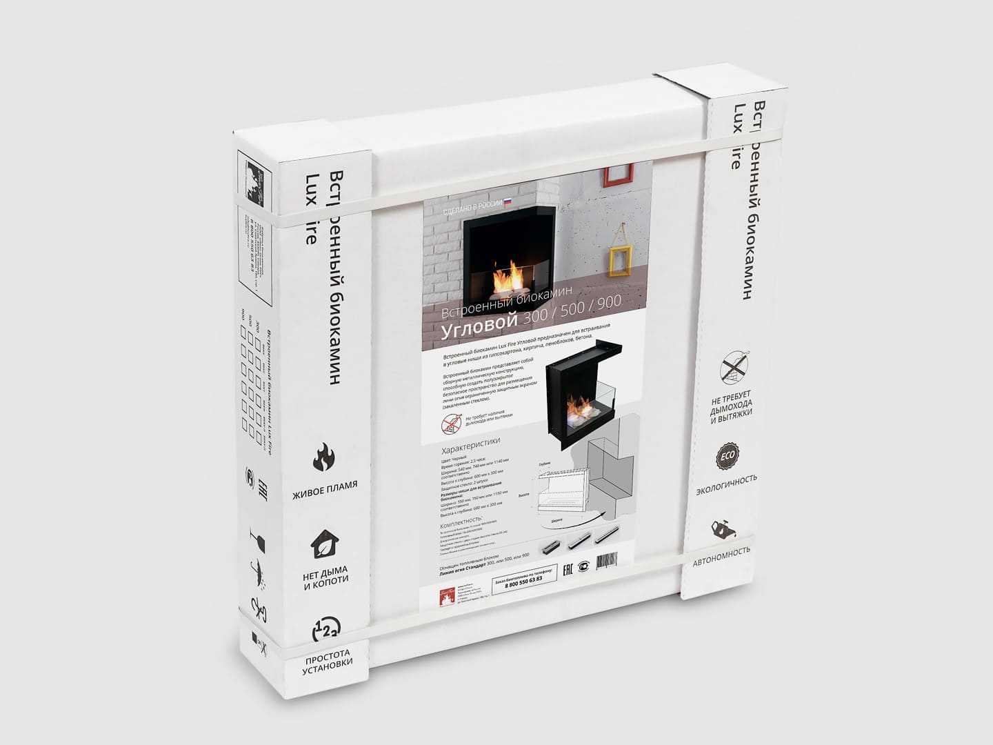 Описание встраиваемого углового биокамина Lux Fire 555 M (правый угол)