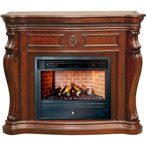 Портал выполнен в классическом стиле. Основным его отличием является мощный и роскошный вид. Углы боковых стенок оформлены резными конструкциями, имитирующими резные мебельные ножки, выполненные в стиле барокко. Ножки подпирают собой мощную каминную крышку, поверхность которой может быть оформлена различными декоративными элементами, например, резными подсвечниками или старинными часами. Кромка крышки имеет изогнутую форму, а ее карниз оформлен цепочкой резьбы. Верхняя панель над очагом оформлена розеткой, выполненной в форме цветка. Устанавливается вся представленная конструкция на невысокое основание, повторяющее по форме каминную крышку.