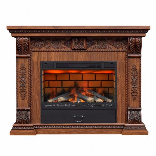 Каминокомплект «Bellagio», портал которого оформлен современным паровым очагом «3D Fog 29», выполнен в богатом классическом стиле. За счет своих размеров он станет идеальным дополнением большой гостиной или каминного зала. Выполнен портал камина «под дерево», что придает более теплый внешний вид изделию. Основа камина выполнена из МДФ, обладающего достаточно высокой плотностью для обеспечения оптимальной жесткости изделия.