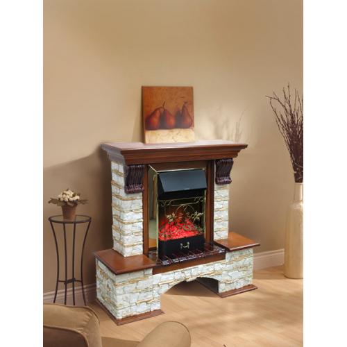 Электрокамин "Бостон К Алтай" изготовлен из МДФ со шпоном дуба, облицовка электрокамина - искусственным камнем серии Алтай, фактура и цвет камня создаёт ощущение лета в тайге. Окрас электрокамина любой на выбор.