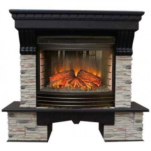 При изготовлении портала каминокомплекта использованы искусственные материалы – МДФ и искусственный камень серого цвета. Особенность их является то, что они по техническим характеристикам мало отличаются от натуральных. Но преимуществом их является то, что они способны лучше переносить перепады температур и влажности. Волокнистая структура МДФ позволяет производить его обработку посредством технологии резьбы. Это дает возможность красиво украсить портал каминокомплекта. МДФ сверху покрыт натуральным шпоном, который по цвету и фактуре имитирует натуральный материал. Всего в ассортименте представлено два цвета: темный дуб и венге.