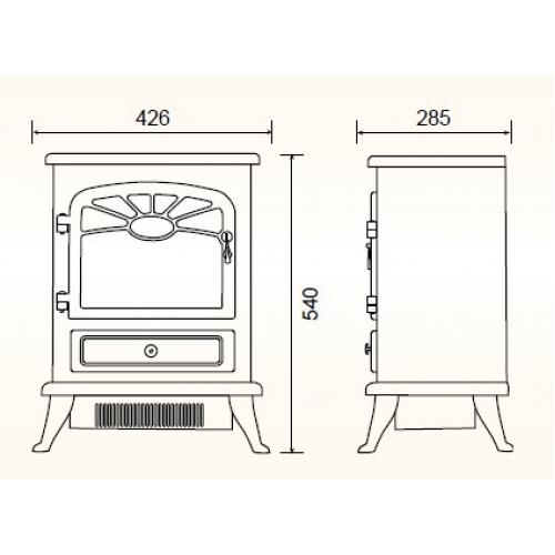 Передняя часть электрокамина оформлена декоративной дверкой со стеклянным окошком. Под ней имеется имитация зольника. При открытии дверки «зольника» обеспечивается доступ к панели управления электрокамином. Устанавливается вся конструкция на декоративные ножки. Внутренняя часть оформлена декоративным топливом. Такая конструкция отлично вписывается практически в любой интерьер. Электрический камин «EFP/F-100» способен стать украшением не только жилых помещений, но и помещений в учреждениях коммерческой сферы.