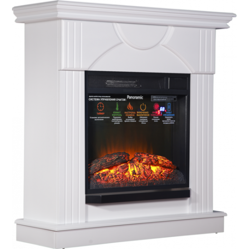 Весь дизайн портала подчинен прямоугольникам, расположенным по бокам, по верхней панели, по карнизу массивной широкой каминной полки и это, вместе с чистым белым цветом придает камину строгость и монументальность. Электрокамин не станет центром интерьера, но он займет свое достойное место в помещении и будет надежно давать тепло и нести уют и комфорт.
